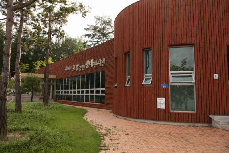 충주시에 있는 인공저수지 호암지 안에 있는 생태전시관이다. 호암지는 일제강점기 당시 달천평야에 농업용수를 공급하기 위해 만든 인공저수지다. 당시 일본인이었던 충주수리조합장이 주민들을 강제부역으로 저수지를 축조한 우리나라 역사의 아픈 흔적이기도 하다. 급속한 산업화와 도시화로 1999년 관개저수지의 역할을 상실한후, 지난 20008년 시민들을 위한 쉼터와 녹색공간인 호암생태공원으로 탄생했다. 호암생태전시관은 그 안에 있는 전시관으로 호암지와 충주지역, 그 일대의 남한강 생태환경에 대한 다양한 테마와 전시로 꾸며진 곳이다. 호암지의 역사를 함께 볼 수 있는 생태체험학습장으로 많은 사람들이 찾고 있다. 평소 주위에서 볼 수 없는 동,식물의 사진을 전시해 놓았으며 최근 체험교실이 인기를 끌고 있다. 자연물을 이용한 만들기 체험 등 다채로운 생태체험학습이 진행되고 있다. 근처에 택견전수관과 우륵당 등의 문화 시설이 있으며 도시안의 녹색공간으로 많은 사람들에게자연의 기쁨을 만끽할 수 있는 곳으로 사랑받고 있다.