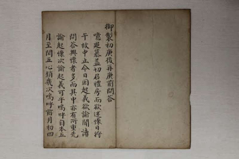 조선 영조 46년 왕이 좌승지를 비롯해 몇몇 신하들과 경서를 토론하는 자리에서 당시 정사를 술회하고 나눈 내용을 옮겨 적은 문답집 성격의 필사본이다. 전주유씨 전능부원군 종친회에서 《어제갱진첩》과 함께 소장하고 있다. 형태는 9폭으로 된 서첩으로 종이는 닥종이를 사영하여 가로로 긴 종이를 병풍처럼 적당한 폭으로 접는 첩장이다. 보존 상태는 전체적으로 양호하다. 앞부분은 서첩을 제작하게 된 배경을 서술하고 있으며 왕이 신하들과 나눈 내용이 중간 부분까지 이어지고 있다. 끝부분에는 책에 기록된 내용을 세자와 신하, 백성들에게 전하여 구현되게끔 하라는 취지가 적혀 있다. 책의 맨 뒷장 날짜로 보아 1770년에 제작되었음을 알 수 있다. 조선시대 후기 영조 때의 사화와 정치적 상황을 알 수 있는 중요한 자료이다.