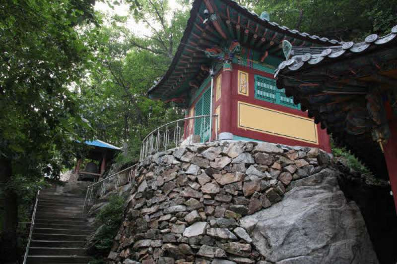 1890년(조선 고종 27) 오영근이 창건한 사철이다. 약초를 캐러 갔다가 석간수를 발견했는데, 그 물을 마시고 소원을 빌었더니 소원이 이루어졌다고 한다. 이후 석간수는 영천으로 이름이 났으며 오영근이 근처에 초가 2칸을 마련하여 절을 창건했다고 한다. 건물로는 대웅보전과 삼성각, 용신, 범종각, 요사채 등이 있다. 이 중 대웅보전은 정면 3칸, 측면 2칸의 팔작지붕 건물로 1924년 세워진 것이다. 내부에 아미타불과 석가모니불·관세음보살의 삼존불이 있고 불상 뒤로는 극락후불탱화와 지장탱화·십일면관음탱화 등이 모셔져 있다. 불상 주위에는 십육나한상이 놓여 있는데, 이 중 4구는 절 부근에서 출토된 것이다. 그밖에 팔각원당형부도 재료와 고려청자 1점이 발굴된 바 있다. 이들 유물은 1995년에 충주박물관으로 이전되어 보관중이다.