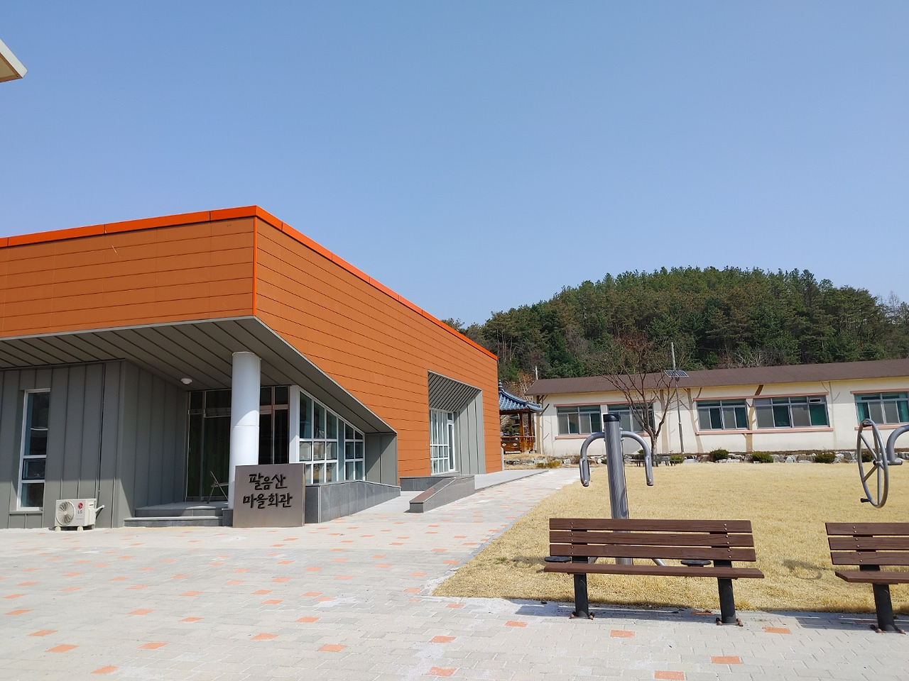 옥천군 청산면 예곡리에 폐교된 옛 초등학교를 활용한 팔음산마을은 수십년 이 자리에서 아이들 웃음소리를 듣고 자란 울창한 플라타나스 나무그늘 쉼터가 있습니다.