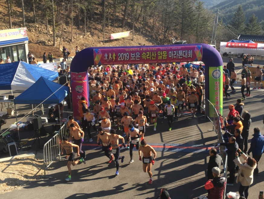 보은 속리산 말티재 꼬부랑길 알몸마라톤 대회는 한겨울 이색 마라톤 대회로 유명하다. 전국마라톤협회가 주최, 주관하며 종목은 5km, 10km가 있다. 대회 참가자 중 남녀 종합, 연령대별, 커플런 우승자에게 트로피가 주어진다. 문의는 홈페이지와 전화번호를 참고하면 된다.