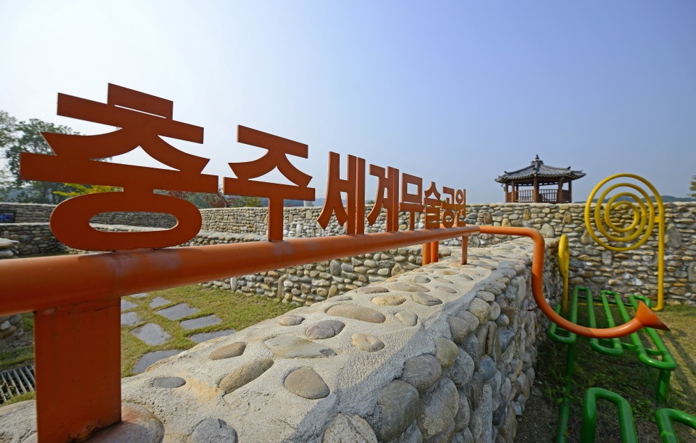 남한강 호박돌을 활용하여 조성된 돌미로원으로 충주 특산물인 사과와 태극문양을 모티브로 디자인 되었으며, 돌담의 총연장길이 2,090m, 면적 8,400㎡ 규모로 아이들과 성인이 함께 즐길 수 있도록 조성되었습니다.