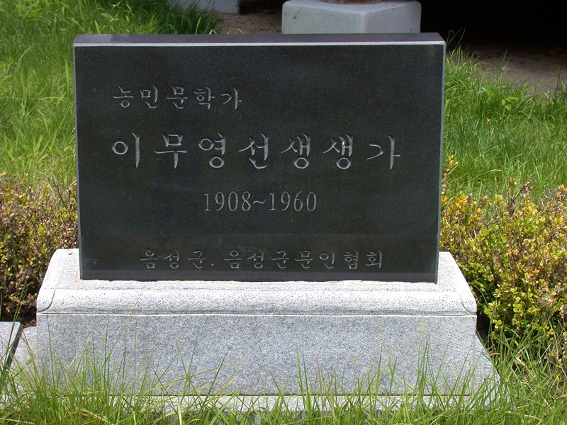 흙의 작가 이무영은 1908년 1월 14일 충청북도 음성군 음성읍 오리골(관명은 석인리) 타관에서 가난한 농민인 이덕여 씨와 인 씨 사이에서 7남매 중 차남으로 의병 항쟁으로 어지러운 때에 이 산골로 피난을 왔다가 태어났다.