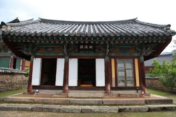 정면 3칸, 측면 3칸 규모의 작은 건물로 한국 전통의 담장과 솟을삼문을 두어 경내의 다른 건물과 독립되어 있다. 이러한 형식은 사당이나 향교, 서원 등에 자주 사용된 유교적 건축형식이다. 정확한 건립연대는 알 수 없으나 사찰 내의 유교적 건축물로 한때 영조의 후궁 영빈이씨의 위패를 모셨고 법주사와 관련이 있는 역대 큰 스님들의 초상을 모셔 두는 조사각으로 사용되기도 하였던 건물로 비교적 옛 모습이 잘 보존되어 있어 보존가치가 높다.