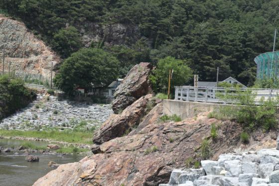 월류봉 앞에 있는 절벽으로 산줄기가 평지에 우뚝 솟아나와 용연(龍淵)에 이르러 형성된 돌머리 모양의 대(臺)이다.